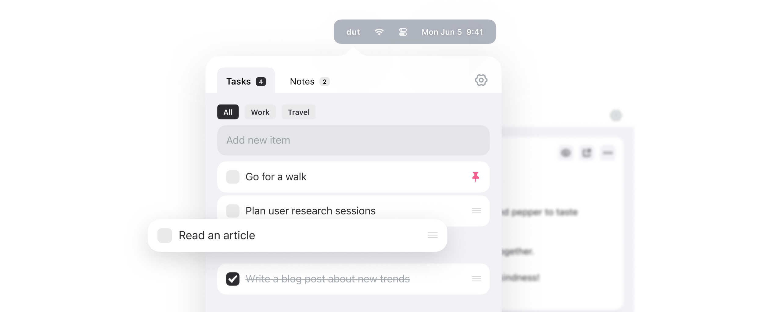 dut is a simple menu bar app that helps you to keep tasks and notes.